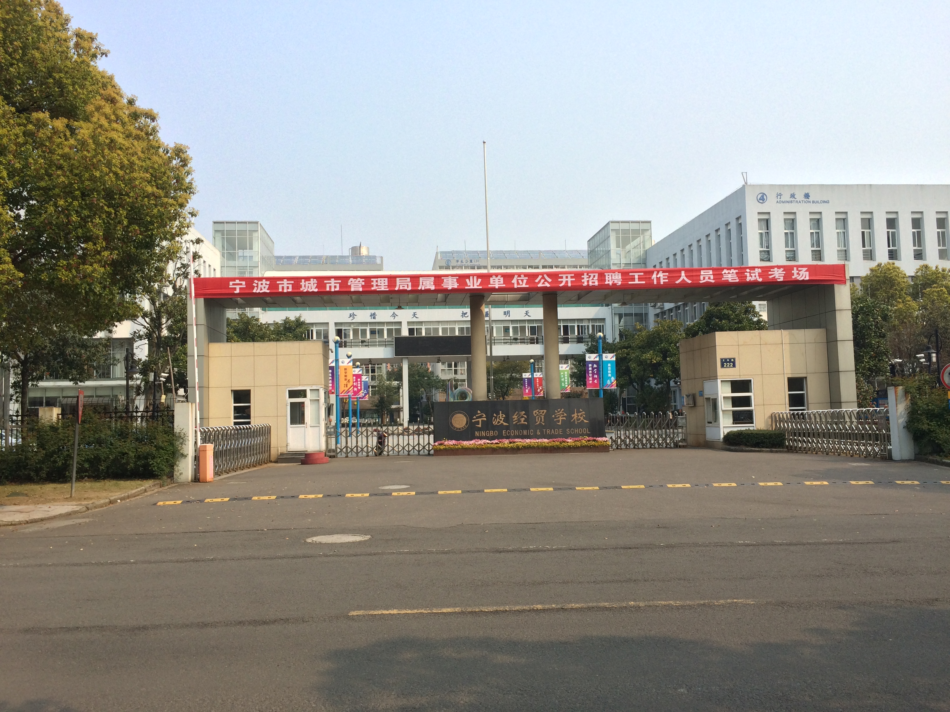 寧波經(jīng)貿(mào)學校(寧波市第九中學)創(chuàng)辦于1956年,職業(yè)教育始辦于1984年,2006年被評為浙江省一級重點職高,2008年2月成為國家級重點職業(yè)學校。2006年9月,學校完成整體搬遷,全新校舍位于高教園區(qū)南區(qū),按國家級全寄宿制重點職業(yè)學校標準建設,占地121畝,建筑面積5萬5千余平方米,其中實訓大樓建筑面積15000余平方米,建成學校所設專業(yè)配套實驗實訓室50余個,實現(xiàn)了教學硬件配置現(xiàn)代化、規(guī)格化,盡享高教園區(qū)的文化資源和育人氛圍。學校著力打造本市首家開放式現(xiàn)代服務業(yè)實訓基地,充分發(fā)揮基地的教育實訓功能、培訓功能和職業(yè)資格鑒定功能。