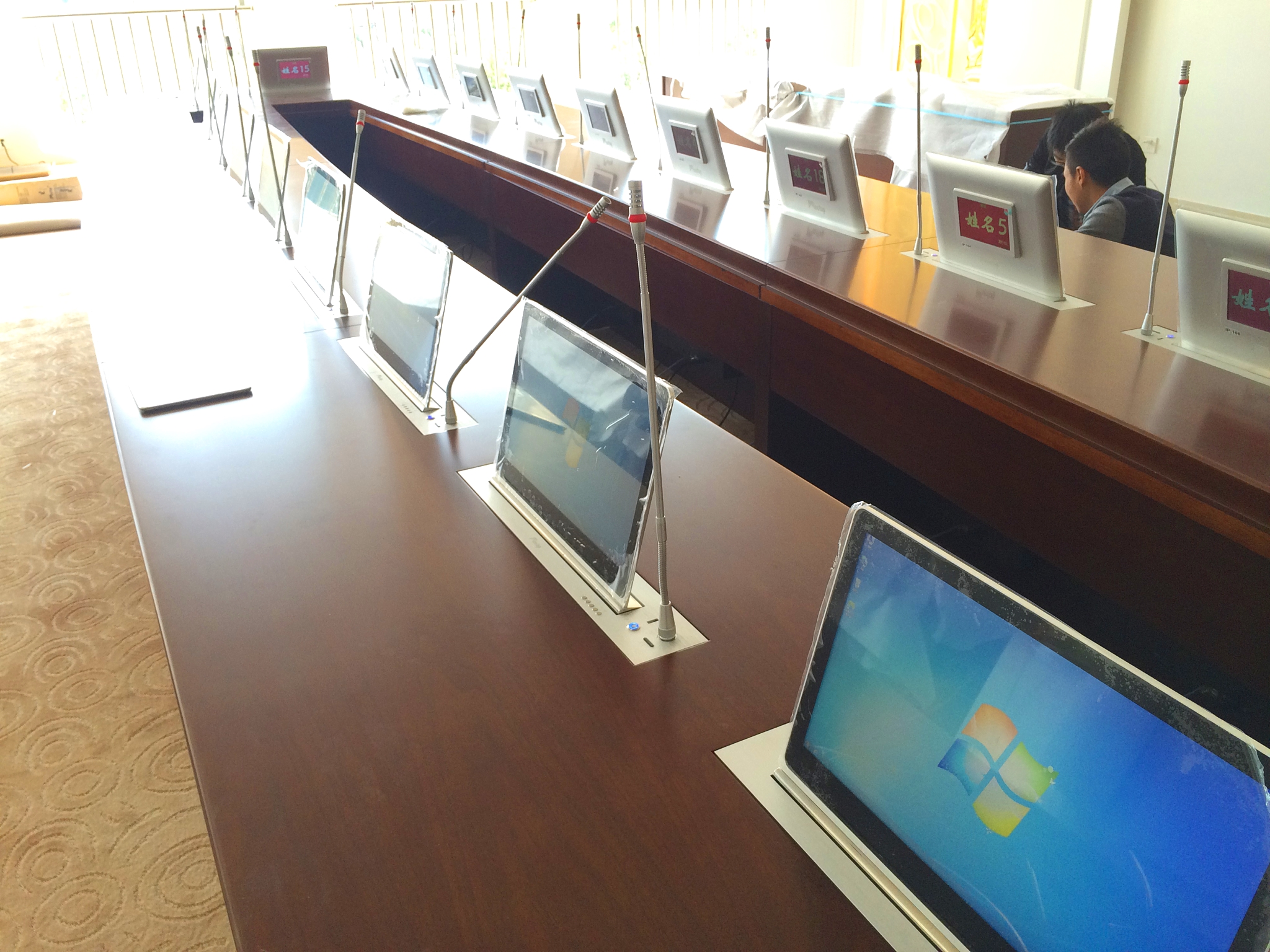 寧波經(jīng)貿(mào)學校會議室,對于事件的應急討論決策急需一個性能穩(wěn)定、音質(zhì)清晰、操作簡單的會議系統(tǒng)。對此,京邦電子(KING-BANG)為其提供了高智能會議系M-806A和M-807A系列,DPLL數(shù)字鎖相環(huán)多信道頻率合成技術,會議聲音清晰通透。音質(zhì)清晰,通過專業(yè)功放和反饋抑制器,音響處理器等眾多設備,配合調(diào)音臺,實現(xiàn)對所有會議功能進行集中控制。