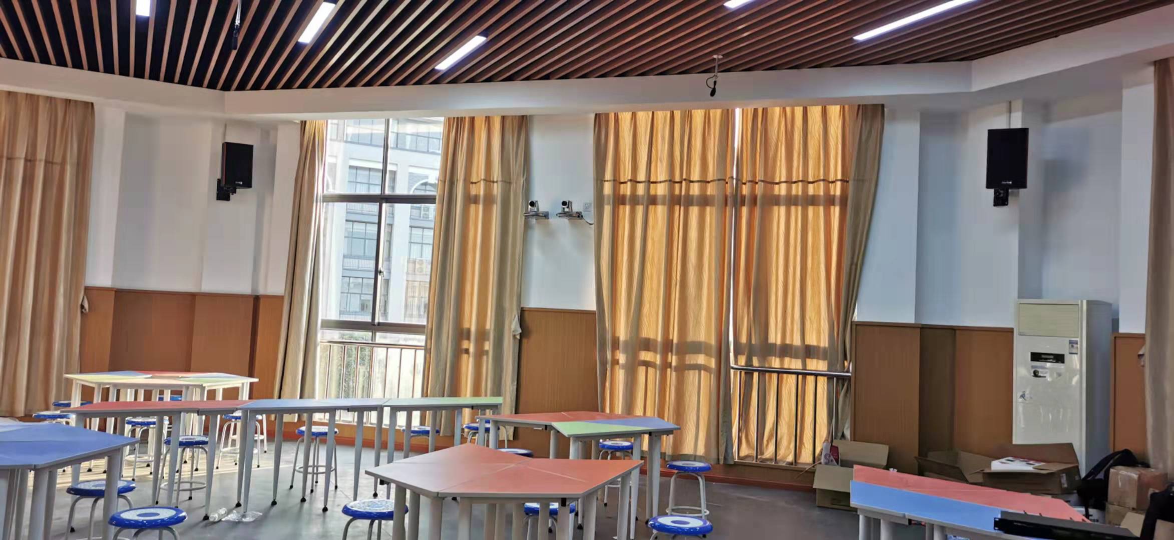 滿足日常的教學(xué)、培訓(xùn)、會(huì)議及單位技術(shù)研討等需求,采用了京邦電子(KING-BANG)會(huì)議系統(tǒng)、專業(yè)擴(kuò)聲系統(tǒng)、中央控制系統(tǒng)等組成的會(huì)議方案,成功打造了一個(gè)先進(jìn)化、信息化、智能化的多媒體教室;
