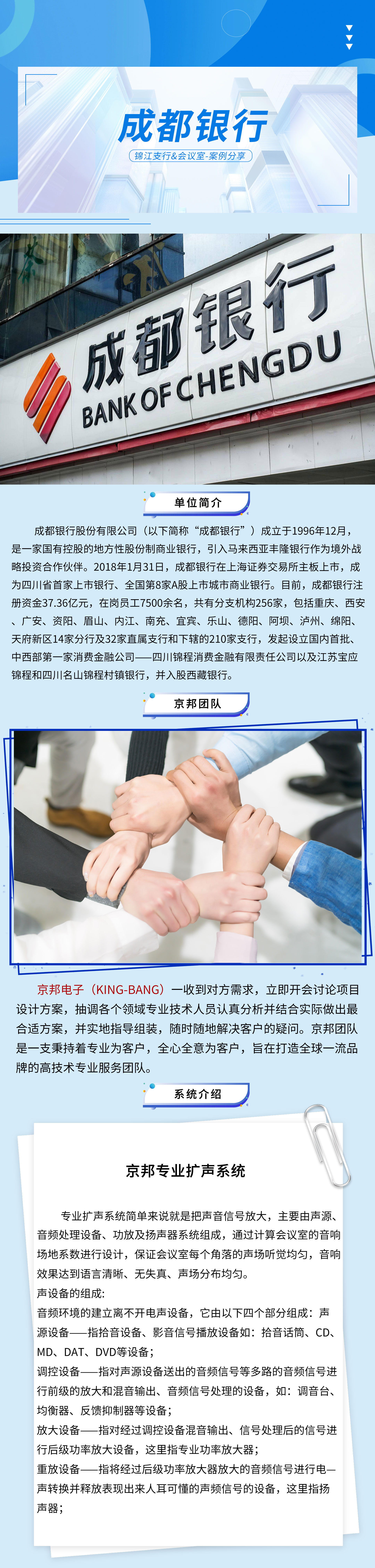 【京邦·案例會(huì)議擴(kuò)聲系統(tǒng)案例】成都銀行錦江支行