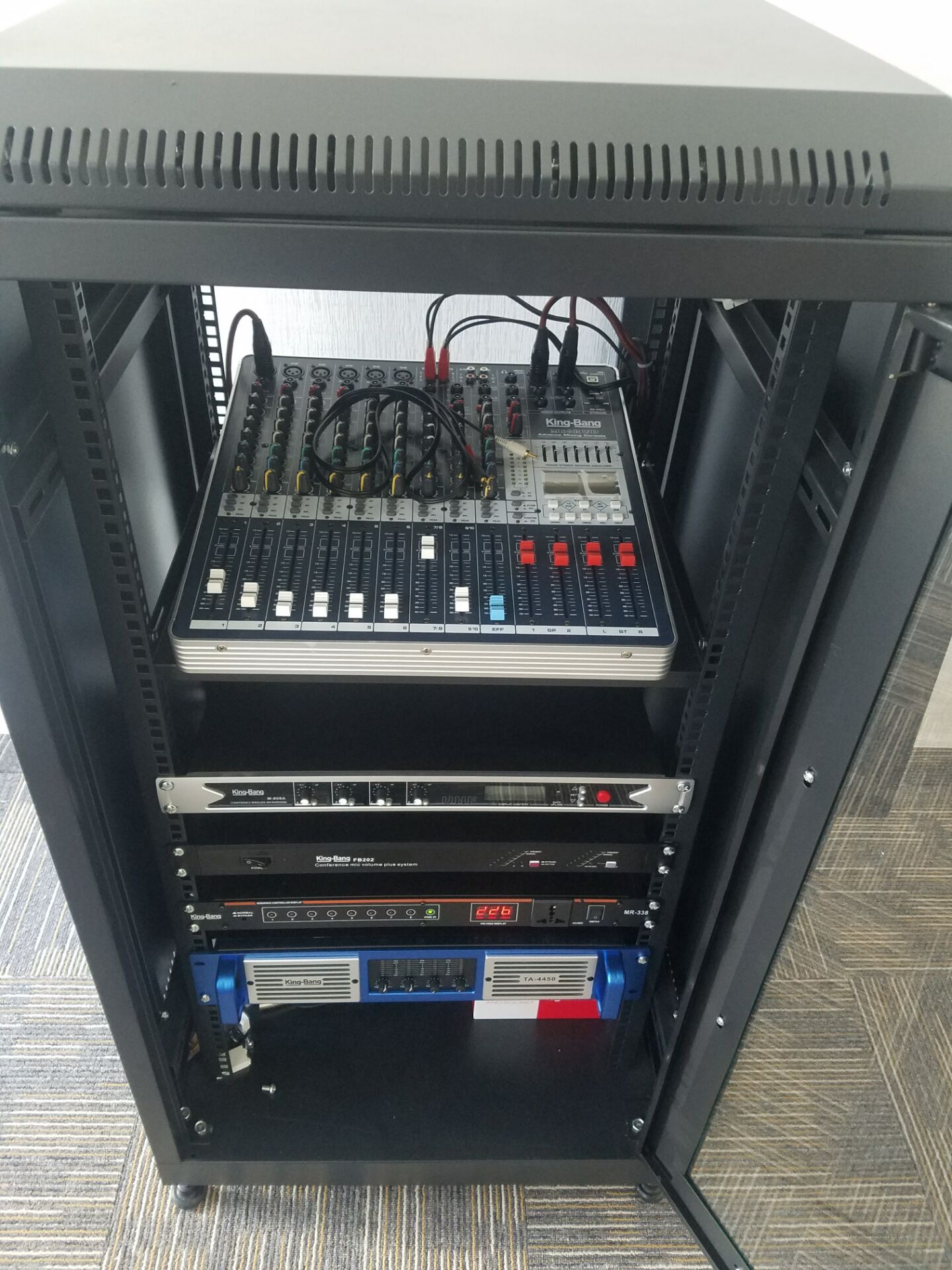 專業(yè)擴(kuò)聲系統(tǒng)簡單來說就是把聲音信號放大,主要由聲源、音頻處理設(shè)備、功放及揚(yáng)聲器系統(tǒng)組成。通過計(jì)算會議室的音響場地系數(shù)進(jìn)行設(shè)計(jì),保證會議室每個(gè)角落的聲場聽覺均勻,音響效果達(dá)到語言清晰、無失真、聲場分布均勻。