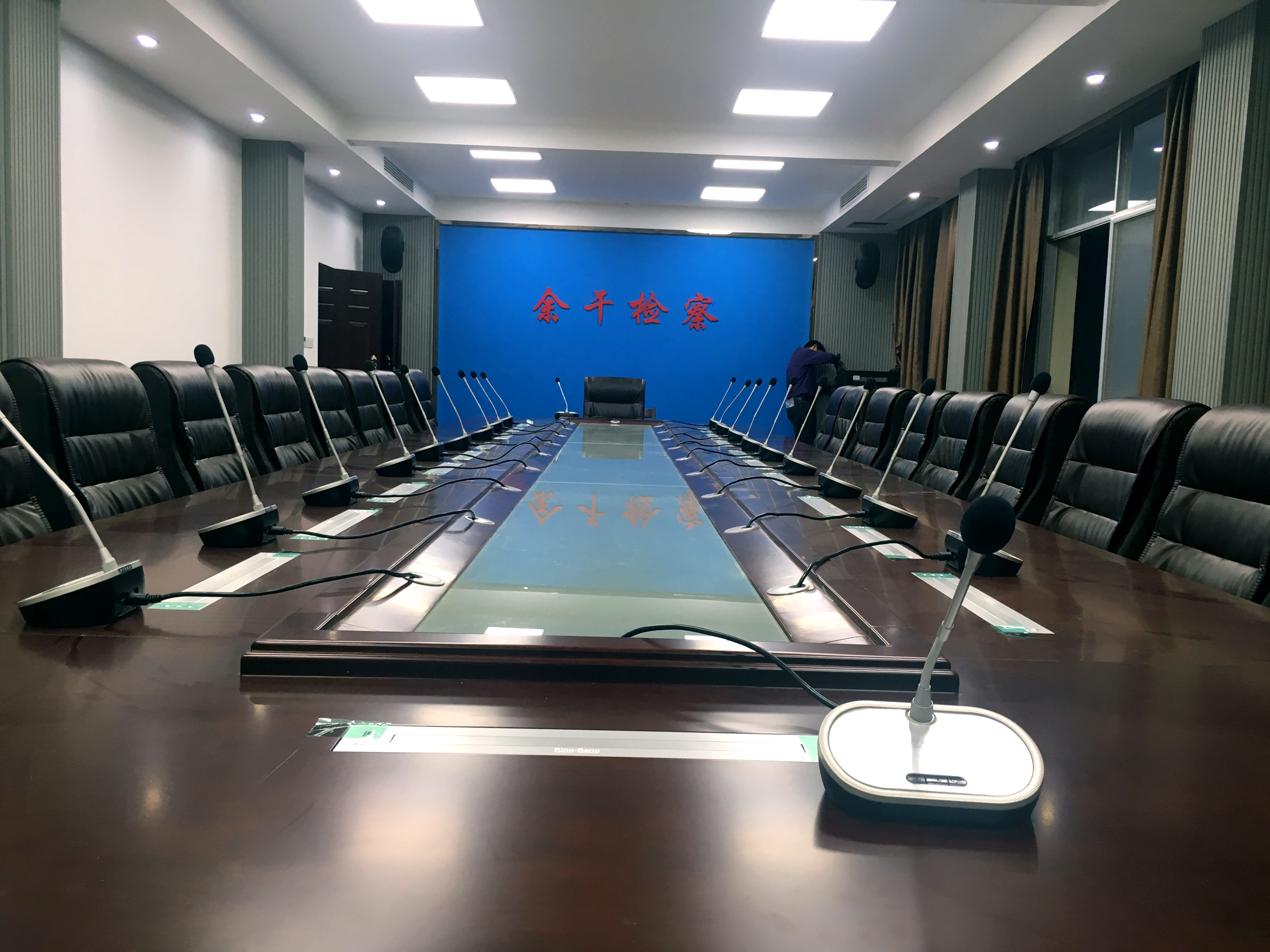 上饒余干縣檢察院要求京邦電子(KING-Bang)打造一套會議系統(tǒng)能對會議實施控制、管理。保真、討論清晰有序,滿足日常會議/培訓需要。