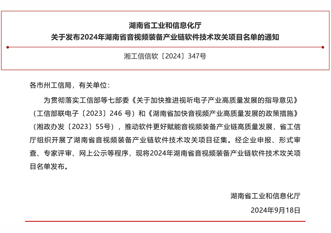2024年湖南省音視頻裝備產(chǎn)業(yè)鏈軟件技術(shù)攻關(guān)項(xiàng)目名單正式發(fā)布